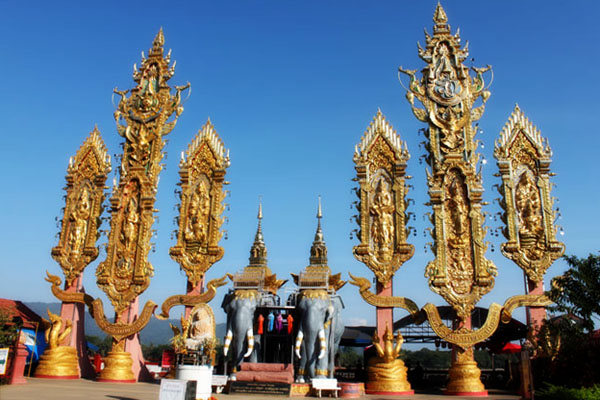 ใช้ทางหลวงหมายเลข 10 เมื่อผ่าน อ.แม่จันเลี้ยวขวาเข้าทางหลวงหมายเลข 1016 (แม่จัน-เชียงแสน) ระยะทาง 29 กิโลเมตร ก่อนถึงกำแพงเมืองเกาเชียงแสนมีสี่แยกบายพาส เลี้ยวซ้ายมีป้ายบอกทางไปสามเหลี่ยมทองคำหรือเลือก ทางตรงไปผ่านอำเภอเชียงแสน จากนั้นเลี้ยวซ้ายไปตามถนนเลียบน้ำโขงอีก 12 กิโลเมตร